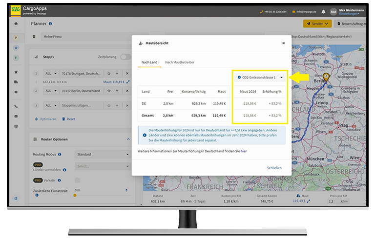 Mit dem Lkw-Routenplaner und Mautrechner SVG CargoApps