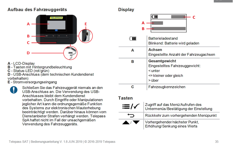 Hinweis: Durch Eingriffe oder Manipulationen jeglicher Art kann die ordnungsgemäße Funktion der elektronischen Mauterhebung beeinträchtigt werden und zu Strafen/Bußgeldern führen.