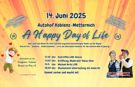 Am 14. Juni 2025 lädt die Kraftfahrer-Initiative Bewegen mit Herz e. V. zum großen Kinder- und Familienfest auf dem Autohof Koblenz-Metternich (A61, Ausfahrt 38) ein.